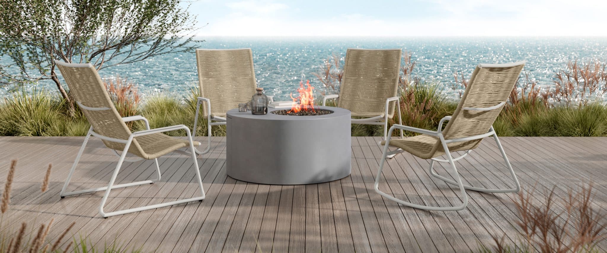 The Grande Collection features a low, streamlined profile with integrated cushions, delivering a contemporary take on timeless outdoor design.